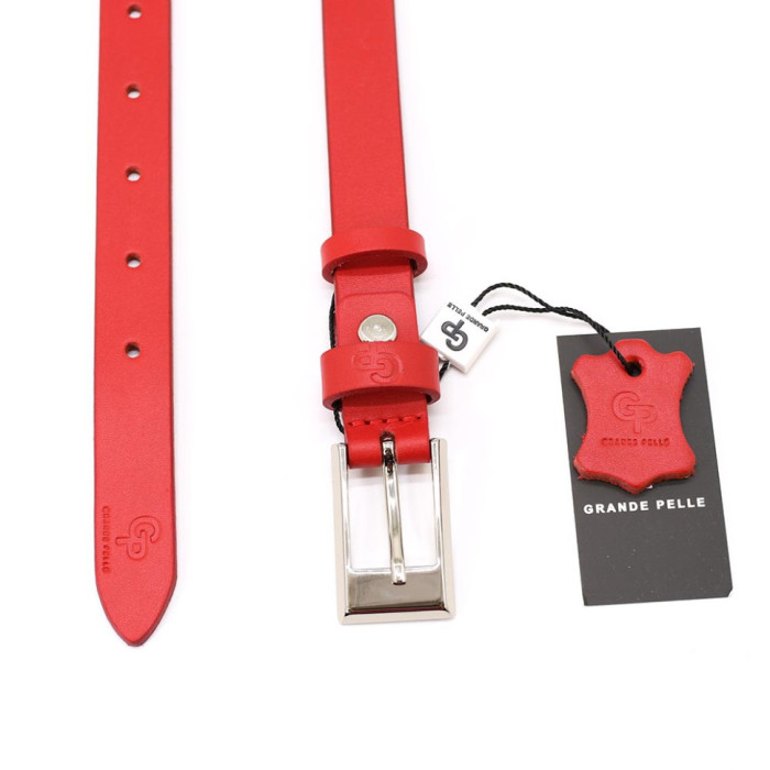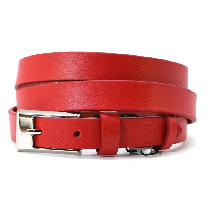 Ремінь жіночий тонкий Grande Pelle 26030030033 в червоному кольорі.