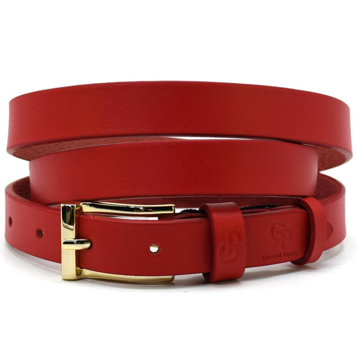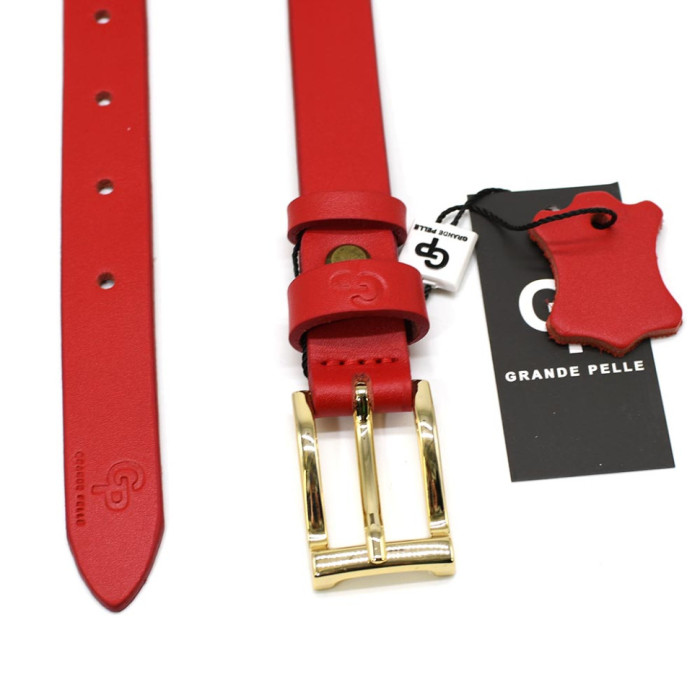 Ремінь жіночий тонкий Grande Pelle 26070040033 в червоному кольорі.
