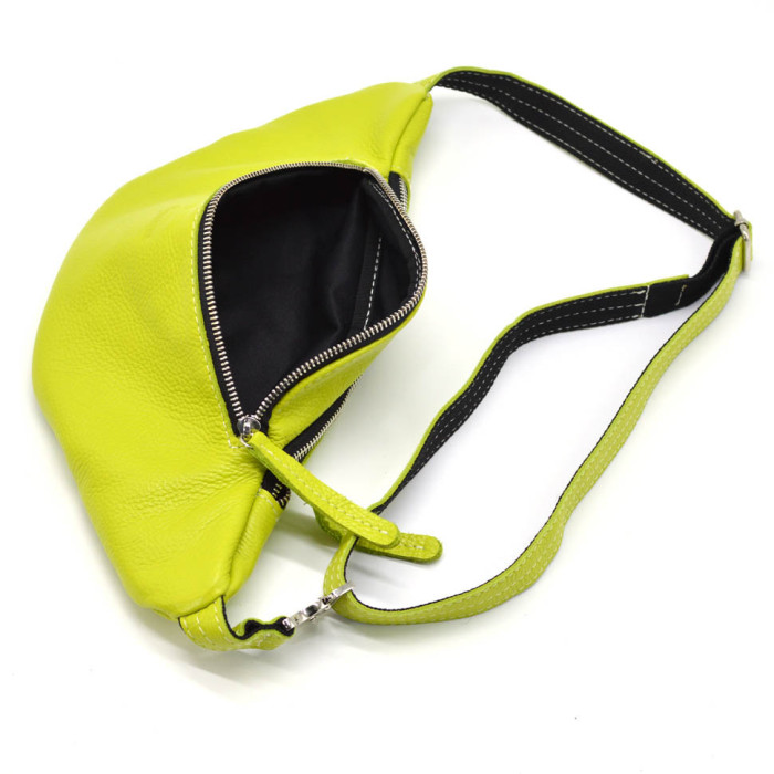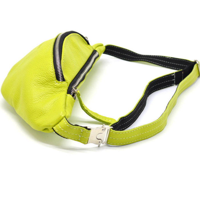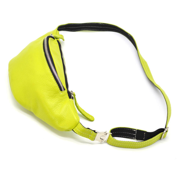Женская сумка на пояс, бананка Лайм TARWA 3035-305. Бананка изготовлена полностью из кожи флотар, внутри тканевая підкладкака. Два наружных отдела на молниях.