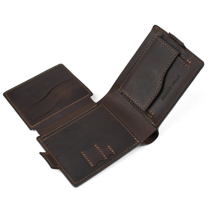 Портмоне пошитий з натуральної матової шкіри крейзі хорс, колір коричневий. Гаманець із зручною монетницею. Стильне чоловіче портмоне радуватиме Вас у повсякденному житті.