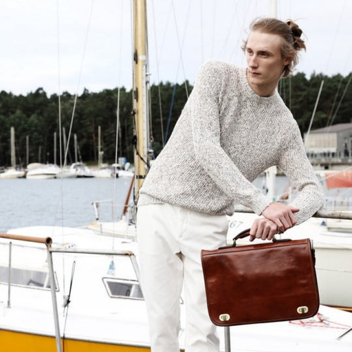 Формально, але поетично. Шкіряний портфель, який служить мостом між двома світами, здатний додати художності діловому стилю або надати формальний блиск повсякденному вбранню. Для тих, хто лавірує між креативом та корпоративом. Поєднуйте з духом переосмислення.