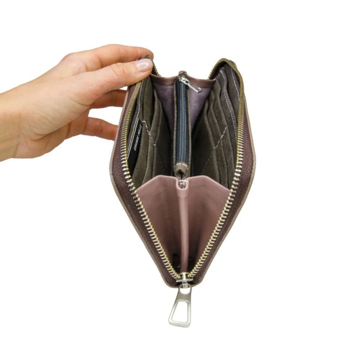 Портмоне із застібкою на блискавці – це вже класична модель, яку воліють ті, хто оцінив переваги та особливості даної моделі. Достатня кількість відділень під картки та візитки, відділення під купюри та одне відділення на блискавці, де можна зберігати монети та дрібні девайси. Сам гаманець надійно застібається на блискавку. У ньому зручно зберігати мобільний телефон, окрім звичних предметів для портмоне.