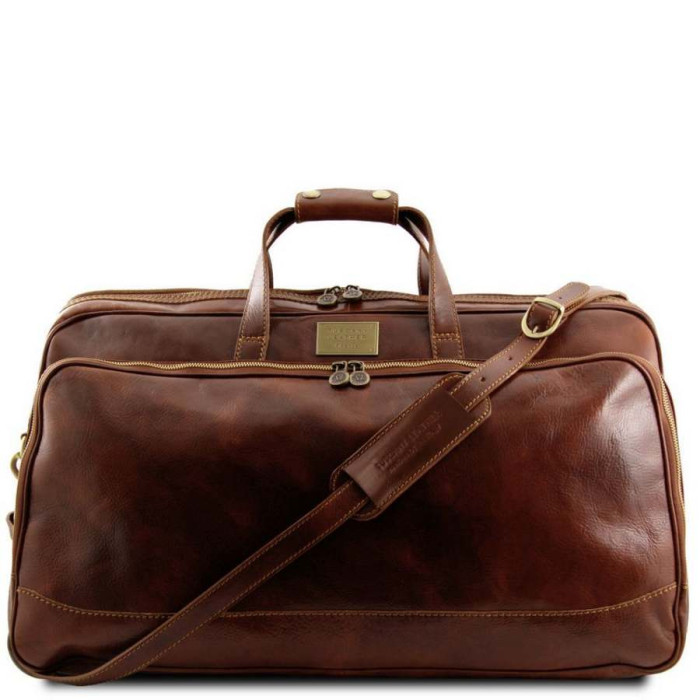 особливістю дорожньої сумки Bora Bora від італійського бренду Tuscany є ефектна латунна фурнітура з ефектом старіння. Для безпеки носіння речей всередині передбачена бавовняна підкладка. Дорожня шкіряна сумка з заднім і переднім кишенею Tuscany Leather Bora Bora організовує ваш відпустку найкращим чином.