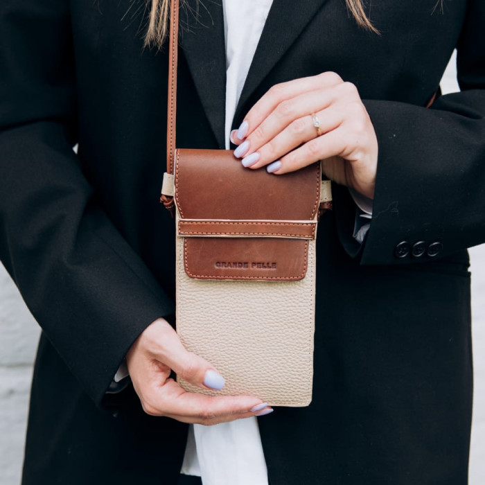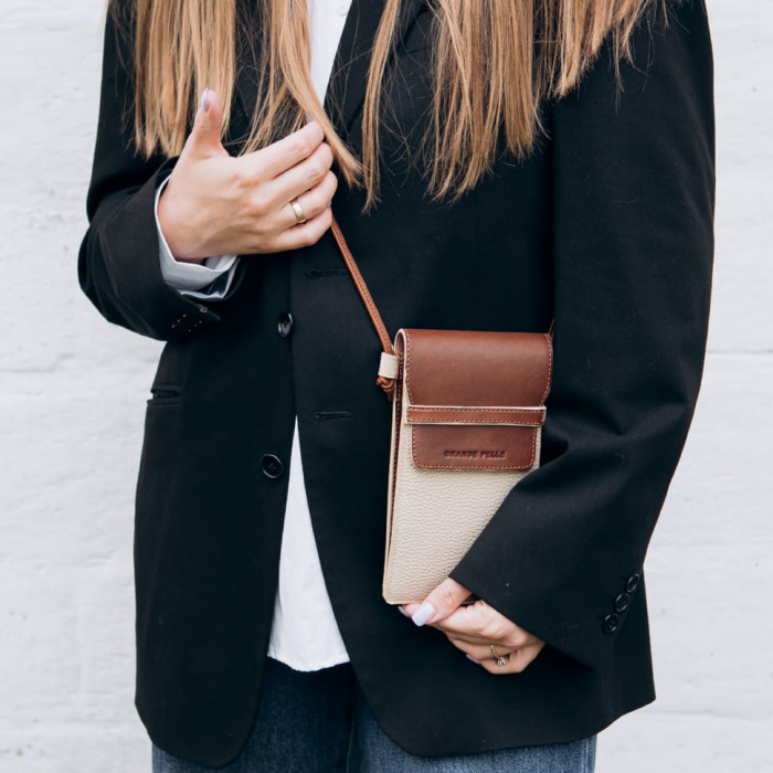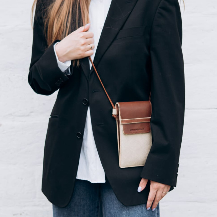 Дана сумка-гаманець виготовлена ручною роботою з натуральної шкіри італійського виробництва. комбінований - коричневий та теракот. Формат аксесуара – вертикальний. Дуже стильна унісекс сумка-клатч. Буде актуальною будь-якої пори року.