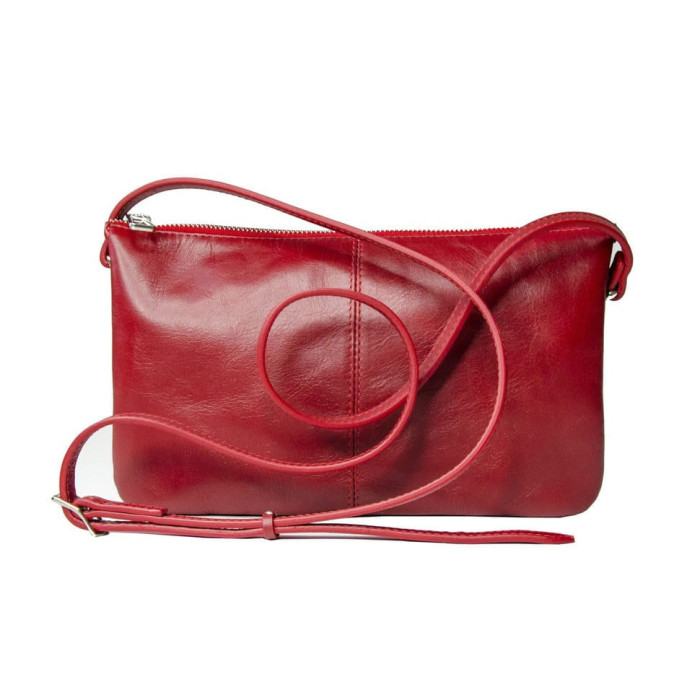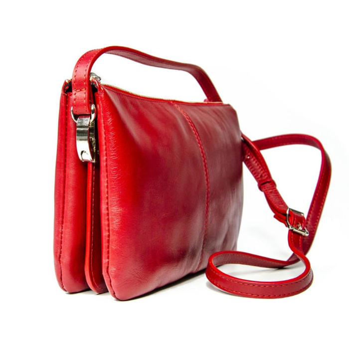 Жіноча сумка-клатч з ремінцем через плече. Сумка виготовлена з натуральної шкіри. Її формат - це зручність та функціональність, продумано з кожним відділенням: ? два основних відділення на блискавці; ? відділення-перегородка на блискавці; ? 6 відділень для візиток та кредитних карток розташованих на внутрішній стінці клатчу; ? дві внутрішні кишені для дрібних речей; ? брелок на кнопці для ключів, флешки.