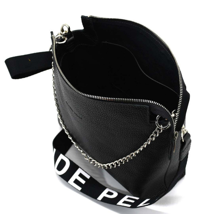 Сумка має стильний текстильний ремінь на плече та ланцюжок. У сумці два ремені.