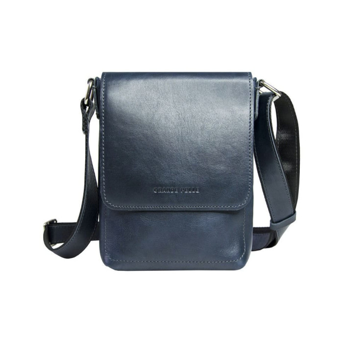 Стильна чоловіча сумка виготовлена з натуральної шкіри синього кольору. Сумка на плече має один основний відділ для портмоне, візитниці, невеликого блокнота та різних необхідних речей, які мають бути під рукою щодня. А в кишеню на блискавці з лицьового боку можна покласти ключі, права, смартфон. Кільце на кнопці для ключів або флешки, у внутрішньому відділенні сумки – девайс, який ти оціниш. Шлейка месенджера подвійна та зроблена з щільного текстилю та натуральної шкіри, регулюється по довжині.