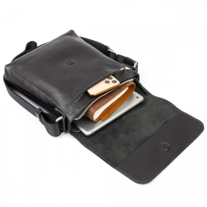 Стильна сумка месенджер виготовлена з натуральної кожі.Основное відділення закривається на молнію.Также є невеликий кишеню з лицьового боку сумкі.Закривается на блискавку і додатково закривається клапаном сверху.Вся фурнітура вищої якості ідеально поєднується з вишуканою шкірою. У сумці немає картону, немає підкладкових тканин, форма вироби зберігається завдяки пружності самої цільної шкіри. Завдяки цьому виріб має високу зносостійкість і благородний зовнішній вигляд.