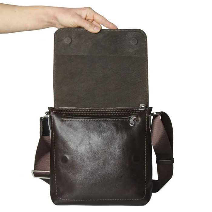 Стильна сумка месенджер виготовлена з натуральної шкіри. Основне відділення закривається на блискавку. Також є невелика кишеня з лицьового боку сумки. Закривається на блискавку і додатково закривається клапаном зверху. Вся фурнітура вищої якості ідеально поєднується з вишуканою шкірою. У сумці немає картону, немає підкладкових тканин, форма виробу зберігається завдяки пружності самої цільної шкіри. Завдяки цьому виріб має високу зносостійкість та благородний зовнішній вигляд.
