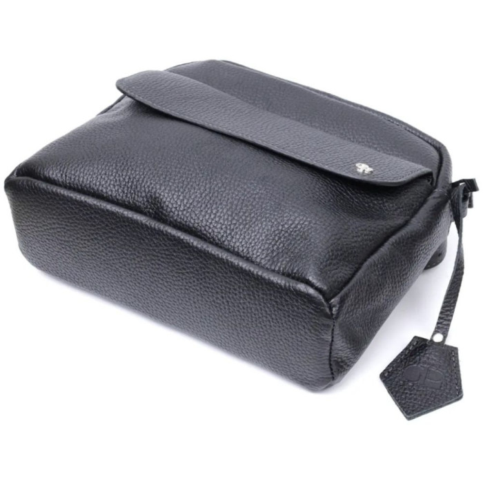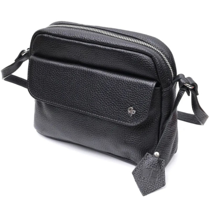 Стильна сумка жіноча через плече оригінального дизайну, яка дуже модна на сьогоднішній день. Аксесуар складається з основного відділення, що закривається на блискавку, кишені відкритого типу та кишені на блискавці всередині, зовнішньої кишені на блискавці, на тильній стороні та накладної кишені на лицьовій стороні, що закривається клапаном на магніти. Виконана з міцної та зносостійкої натуральної шкіри. Фурнітура срібного кольору, регульований шкіряний плечовий ремінь. Упакована ця сумка в гарний фірмовий чохол із ручками.