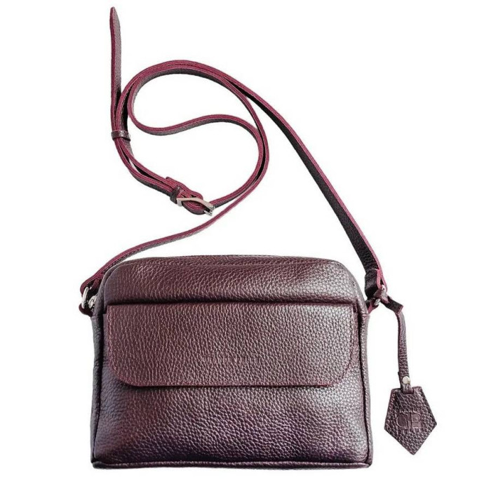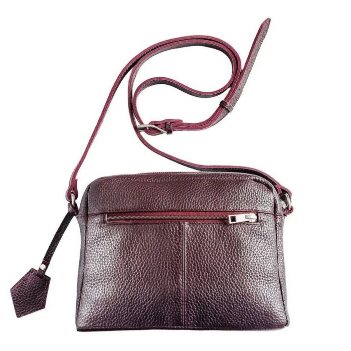 Сумка жіноча шкіряна месенджер 755764 Grande pelle бордо. Виготовлена із фактурної натуральної шкіри флоту, у кольорі Бордо.