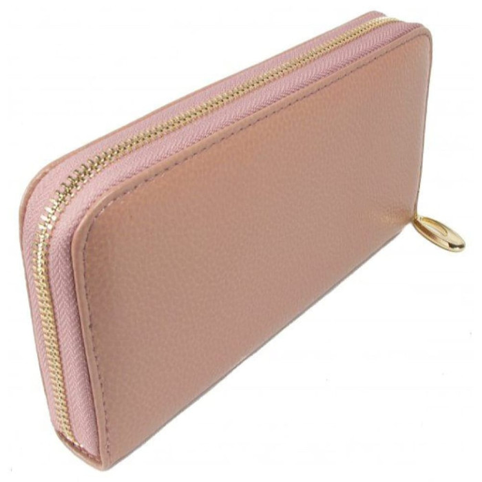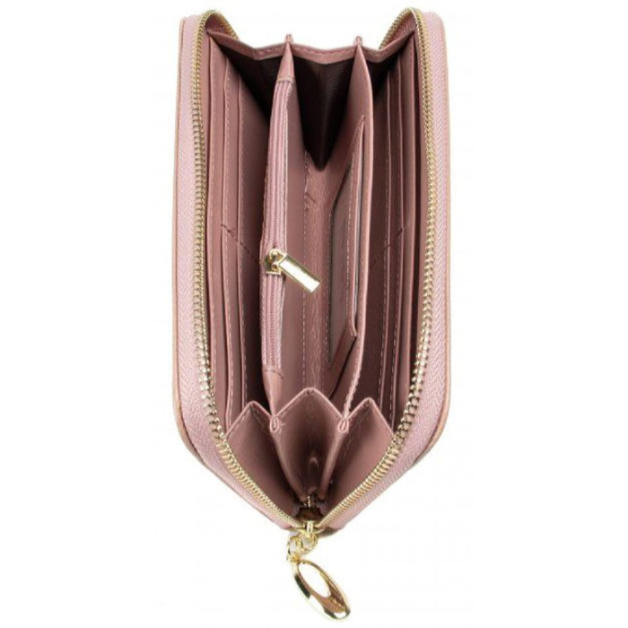 М'яка натуральна шкіра пудрового кольору. Закрите на блискавці відділення. Внутрішній простір розділений на три відсіки з перегородкою монетником на блискавці посередині та прозорим віконцем для card ID.