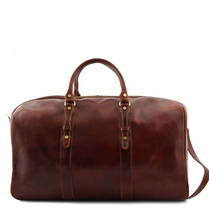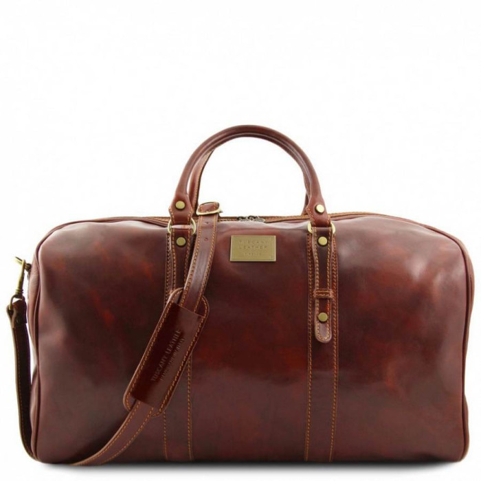 Велика шкіряна дорожня сумка Tuscany Leather Francoforte або оригінальний weekender,брифкейс, лептоп кейс– це розкіш, яку ви можете дозволити собі для відпочинку чи відряджень. Нова модель виготовлена із натуральної телячої шкіри рослинного дублення. Виріб демонструє одне містке відділення на металевій блискавці YKK та додаткову внутрішню кишеню. У комплекті йде:
