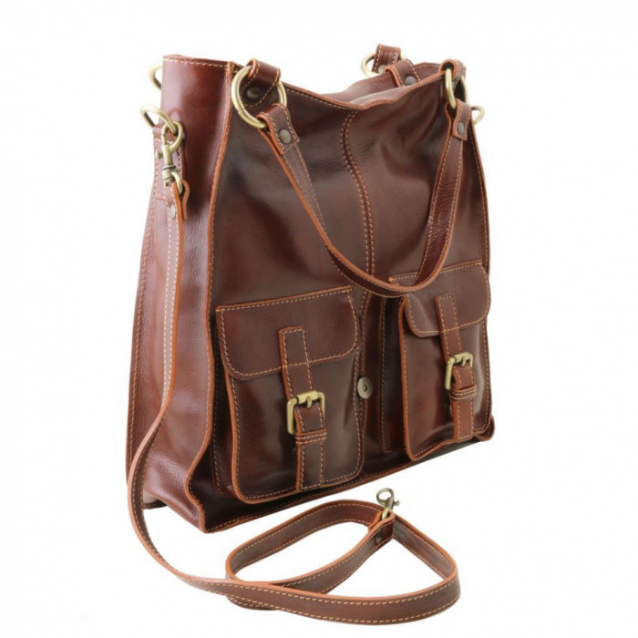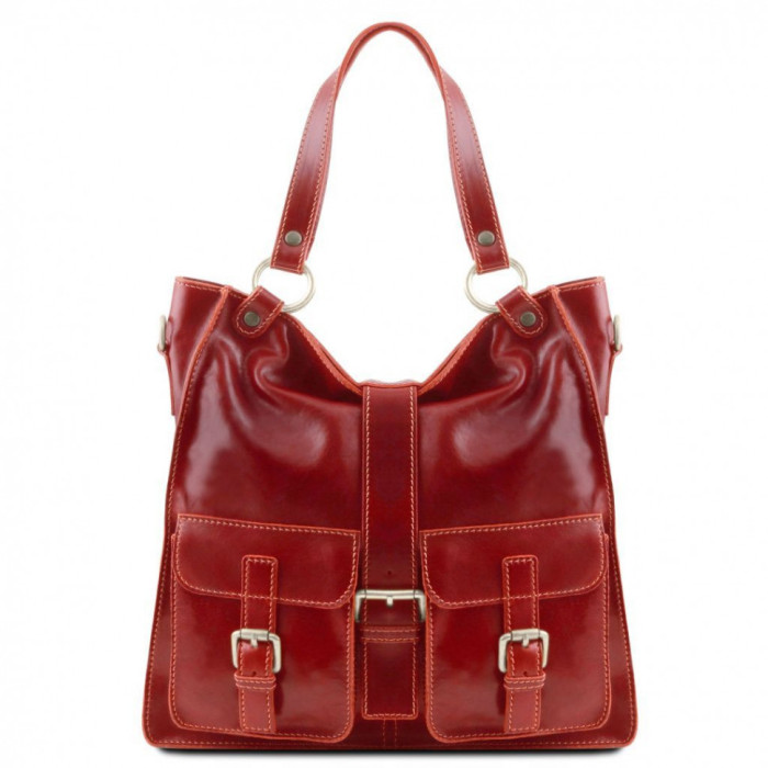 Практична, стильна жіноча шкіряна сумка TUSCANY Leather MELISSA TL140928 внесе в діловий або повсякденний образ особливу харизму і шарм. Модель зроблена їх тосканської натуральної шкіри (теляча) рослинного дублення. Всередині вона має бавовняну підкладку. Зовні-жорстку конструкцію. Виріб представляє модний фасон з єдиним внутрішнім відділенням на блискавці, двома накладними багатофункціональними кишенями на застібці-пряжці і заднім відділенням на блискавці. Вишуканості виробу додає латунна фурнітура з ефектом старіння і нікельована. Застібка на блискавці дозволить тримати речі в цілості. Міцні шкіряні ручки пропонують носити аксесуар в руці або на плечі, а плечовий ремінь допомагає переносити важкі речі, на зразок 14-дюймового ноутбука. Жіноча шкіряна сумка TUSCANY Leather MELISSA TL140928 - це найкраще, що могли скласти італійські майстри.