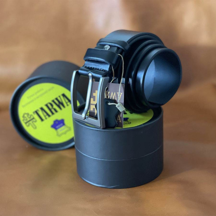 Шкіряний чорний ремінь гладкий TARWA A14077-01 ширина 40мм. Полотно - шкіра виробництва Італія, шири..