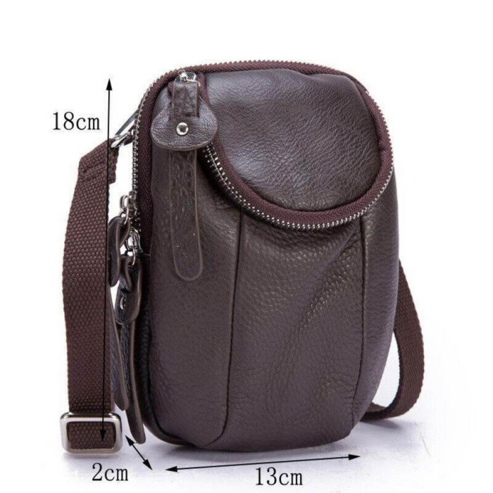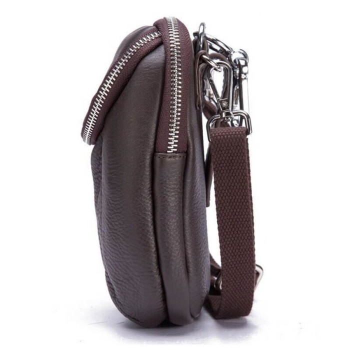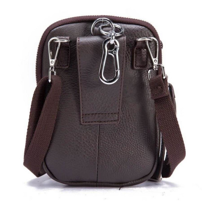 У виробі два автономних містких відділення, всередині одного з відділення внутрішня кишеня на блискавці Друге відділення на лицьовій стороні на блискавці, який накривається шкіряної накидкою-застібкою. Знімна регульована шлею з нейлону кріпиться на металевих карабінах. Два шкіряні петлі для кріплення сумки на пояс М'яка шкіра, відмінно тримається форма. Срібна фурнітура.