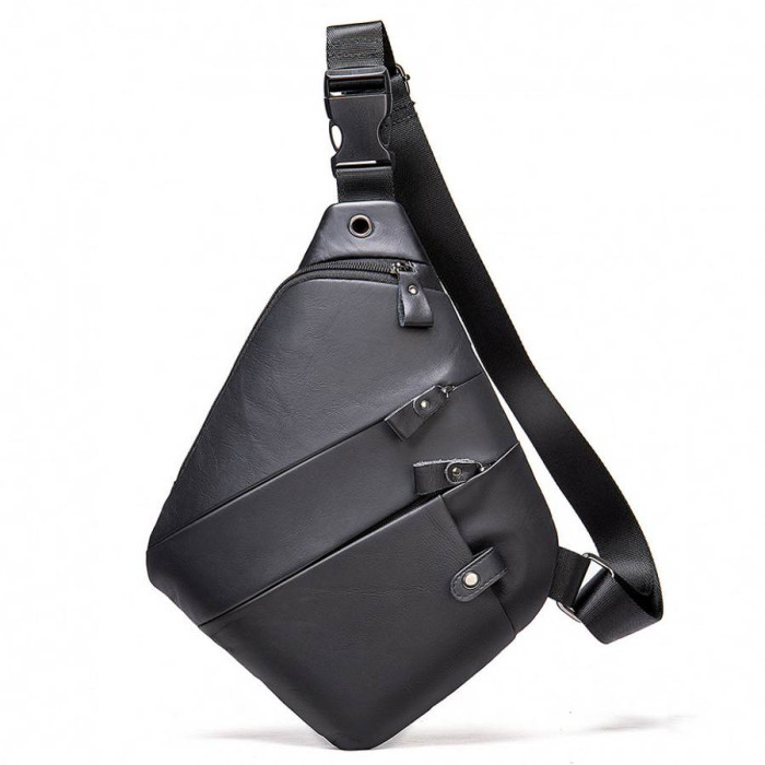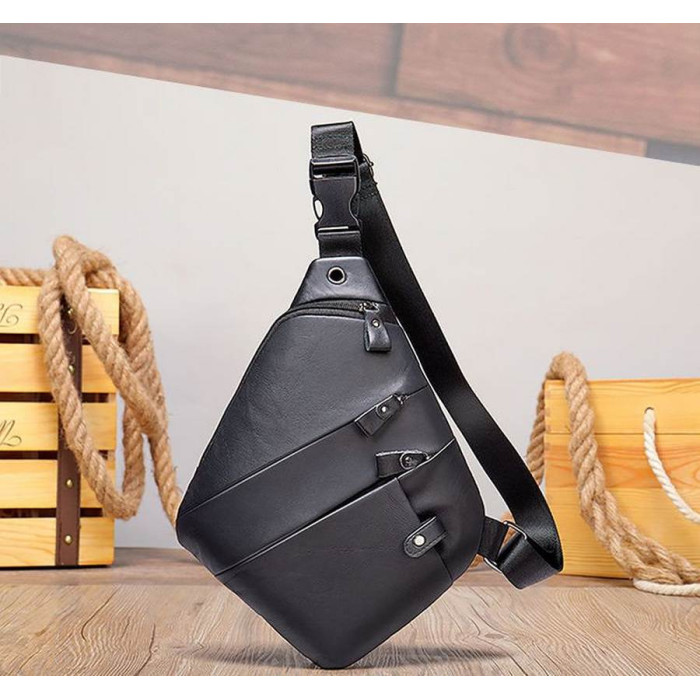 Шкіряна нагрудна сумка слінг чоловіча чорна bx7360A Bexhill