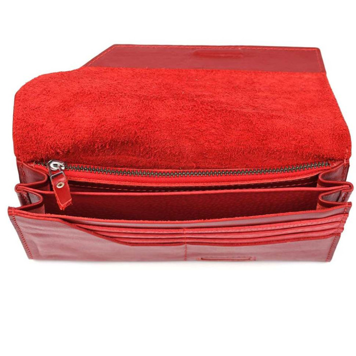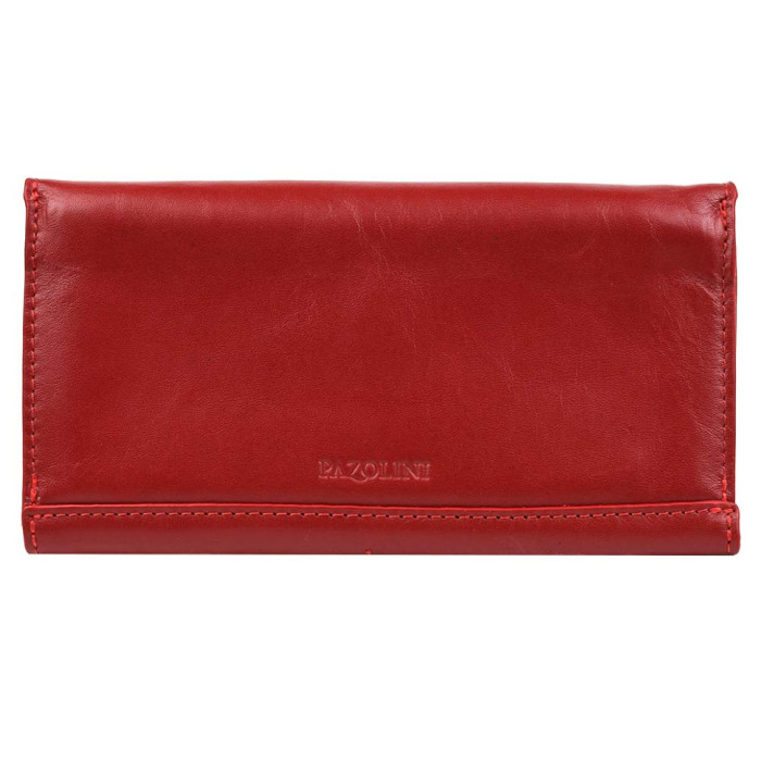 Шкіряний жіночий гаманець Pazolini CP3660 червоний. Складається із трьох відділень для купюр без складання: у лівій частині два відділи для купюр, розділені яскравою контрастною перегородкою; у правій частині - один відділ для купюр, монетниця та два відділи для карток. На лицьовій поверхні фірмовий логотип Carlo Pazolini