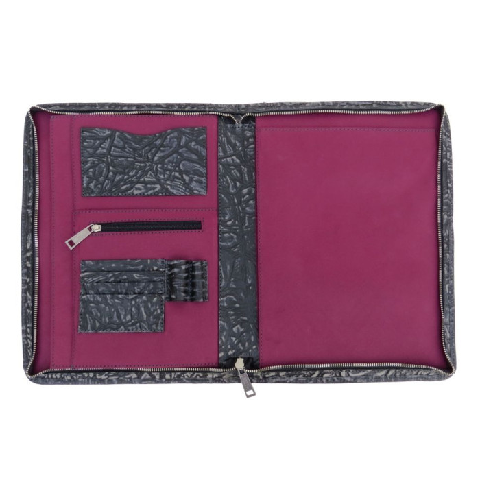 Шкіряна папка для документів, e-Exclusive VIP папка А4 зі шкіри слона TARWA CrG-1294-4lx, сіра шкіра з яскраво вираженою натуральною текстурою і переповненням кольорів, в залежності від рельєфу.