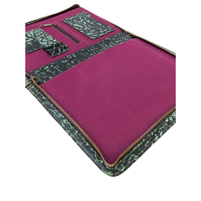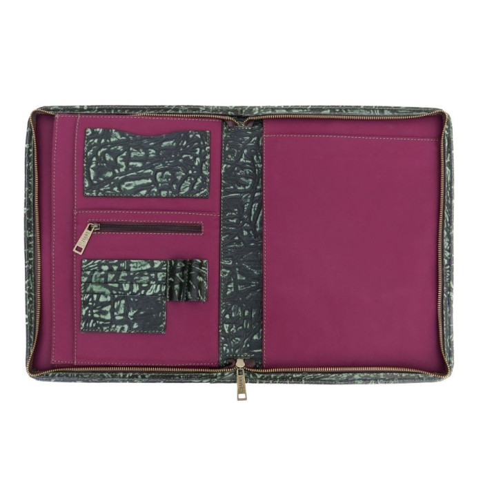 Шкіряна папка для документів, e-Exclusive VIP папка А4 зі шкіри слона TARWA CrH-1294-4lx, зелена шкіра з яскраво вираженою природною текстурою і переливом кольорів, в залежності від рельєфу.