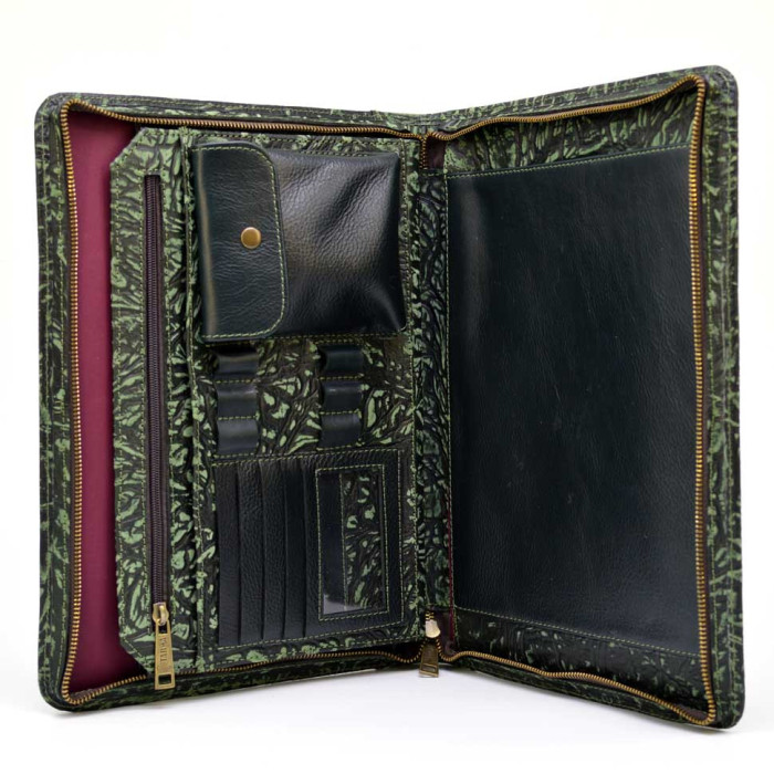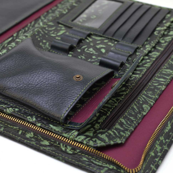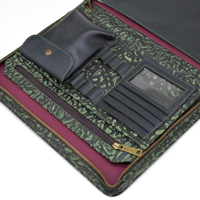 Шкіряна папка для документів, e-Exclusive VIP папка А4 зі шкіри слона TARWA CrH-1295-4lx, зелена шкіра з яскраво вираженою природною текстурою і переливом кольорів, в залежності від рельєфу.