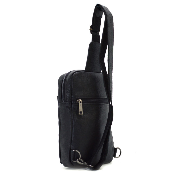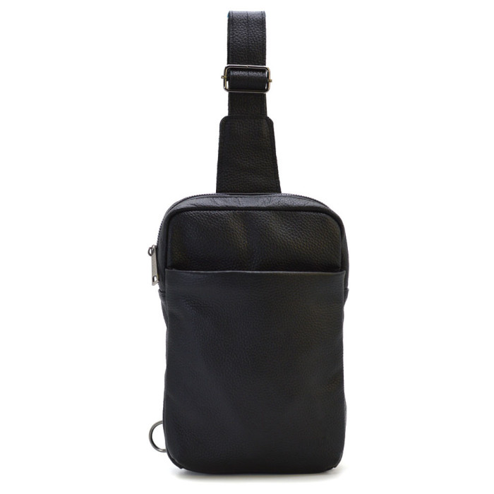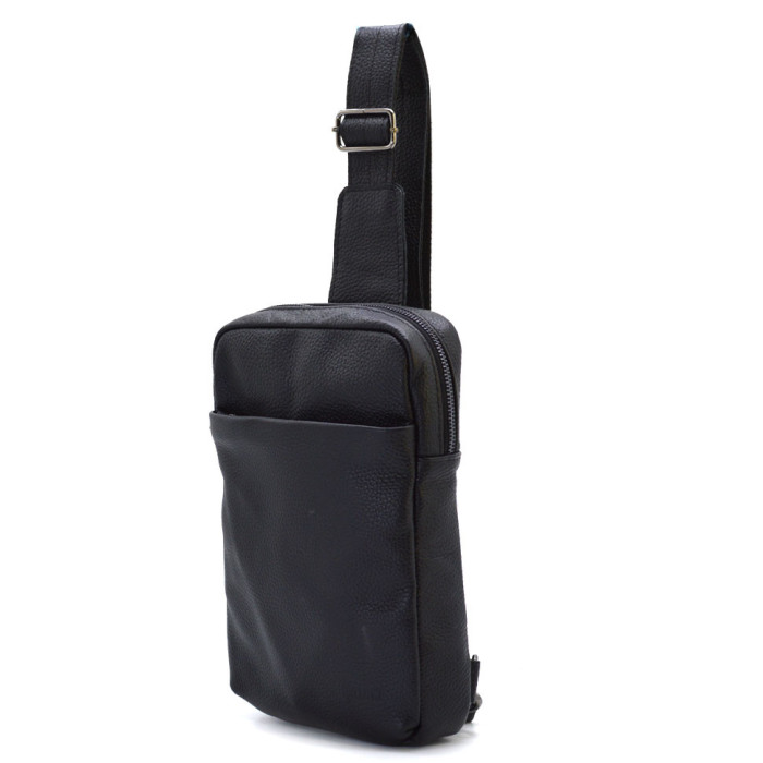 Шкіряний чоловічий слінг, косуха, рюкзак на плече FA-0205-3md TARWA з фактурної шкіри флотар. Незамінний аксесуар у поїздках і просто щодня. Зручний для зберігання особистих документів, телефонів, портмоне, ключів тощо. Виріб всередині має одне основне відділення з однією кишенею на блискавці. На лицьовій та задній частинах рюкзака є кишені на блискавках. Рюкзак застібається за допомогою металевої блискавки. Якісна брендована фурнітура. Підкладка щільна, тканинна. Документи формату А5 поміщаються у слінг без проблем. Модель міні-рюкзака на одне плече - лаконічної прямокутної форми на одну шлейку-ремінь через плече. Моношлейка – міцна із шкіри, регулюється по довжині. Шлейка може бути переставлена як під ліву руку (шульга), так і під праву.