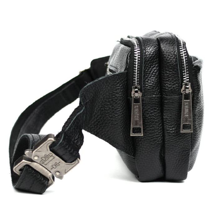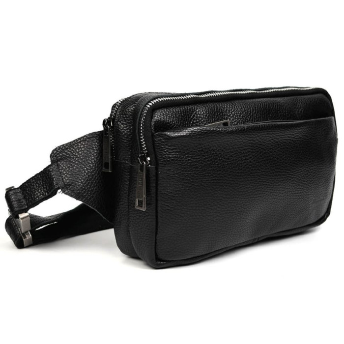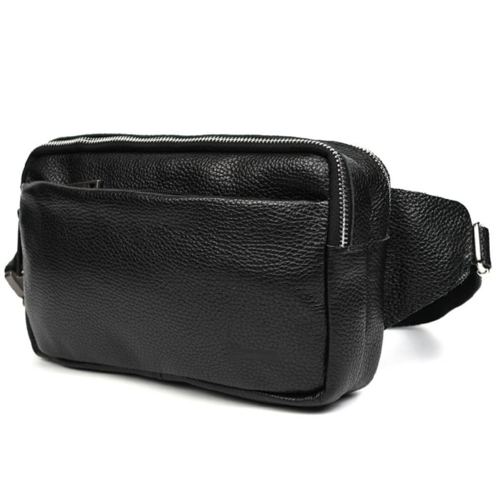Поясна сумка на два відділення TARWA FA-0704-4lx фактурна шкіра (блискавка колір - нікель) з фастексом від українського бренду TARWA. Якісний стильний аксесуар на кожен день у мегаполісі, поїздці та на прогулянці. Виготовлена із телячої шкіри високої якості. Колір – чорний. Два окремі великі відділення застібаються на блискавці з металевими практичними застібками (пулерами). Є зовнішня кишеня поменше, що також застібається на блискавку. З внутрішньої сторони є кишеня для найцінніших речей. Ремінь повністю зі шкіри та текстильної основи. Застібка (фастекс) металева, швидкознімна, застосовується у військовій амуніції, альпінізмі. Текстильна міцна підкладка.