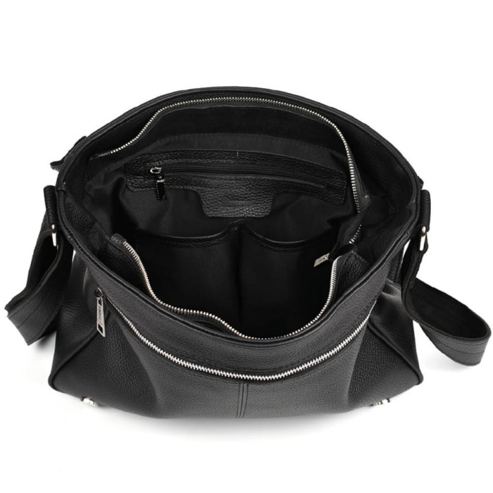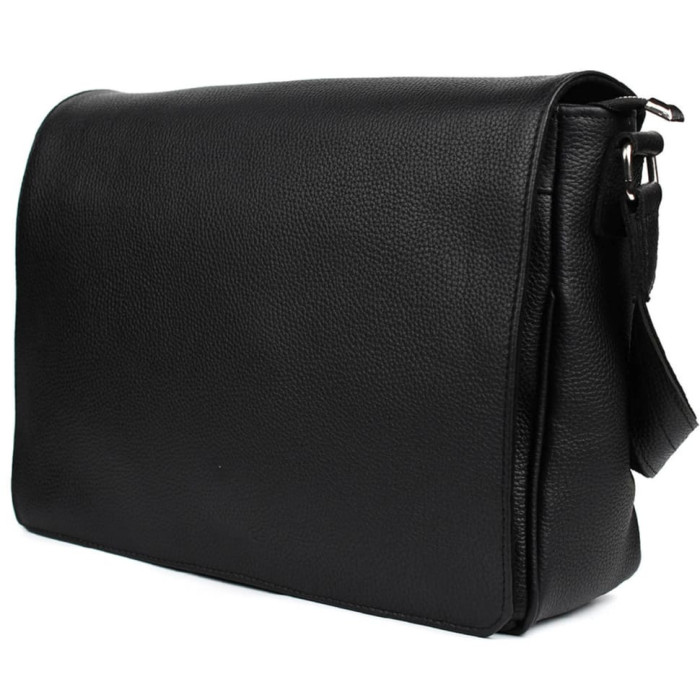 Чоловіча сумка месенджер 1047 на одне містке відділення, з м'яким відсіком всередині для планшета з хлястиком і липучкою, також всередині є три кишені: одна містка врізна на блискавці і дві відкриті для портмоне і телефону. Зовні на лицьовій стороні під клапаном є велика плоска врізна кишеня з блискавкою. Зовні на задній стороні - також врізна кишеня на блискавці. Сама сумка застібається на блискавку, а зверху накривається великим шкіряним клапаном, і безпосередньо в цій моделі виробники вирішили зробити клапан довшим за основну частину сумки. Широкий наплічний регульований ремінь зі шкіри дозволяє комфортно носити аксесуар на плечі.