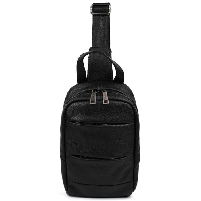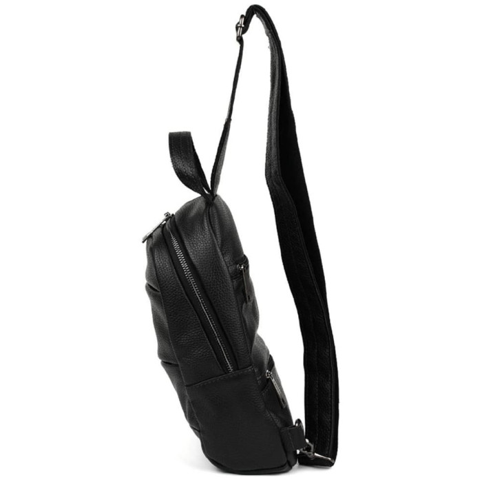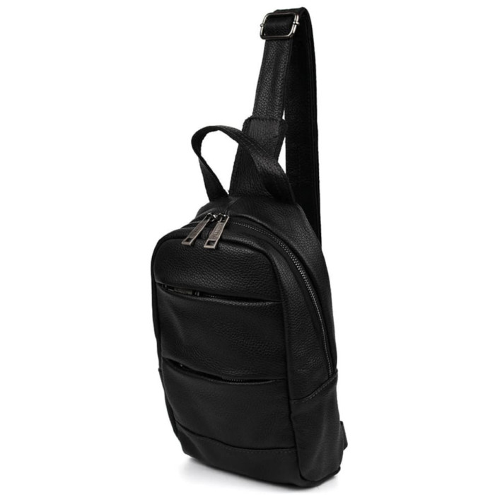 Чоловічий слінг шкіряний рюкзак ТАРВА 6010 виготовлений з телячої шкіри чорного кольору.