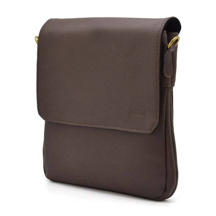 Сумка через плече чоловіча шкіряна із клапаном на 2 відділення з коричневої шкіри флотар.