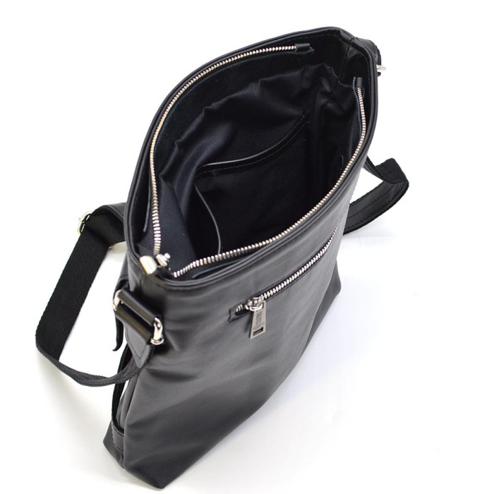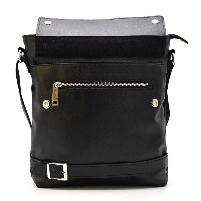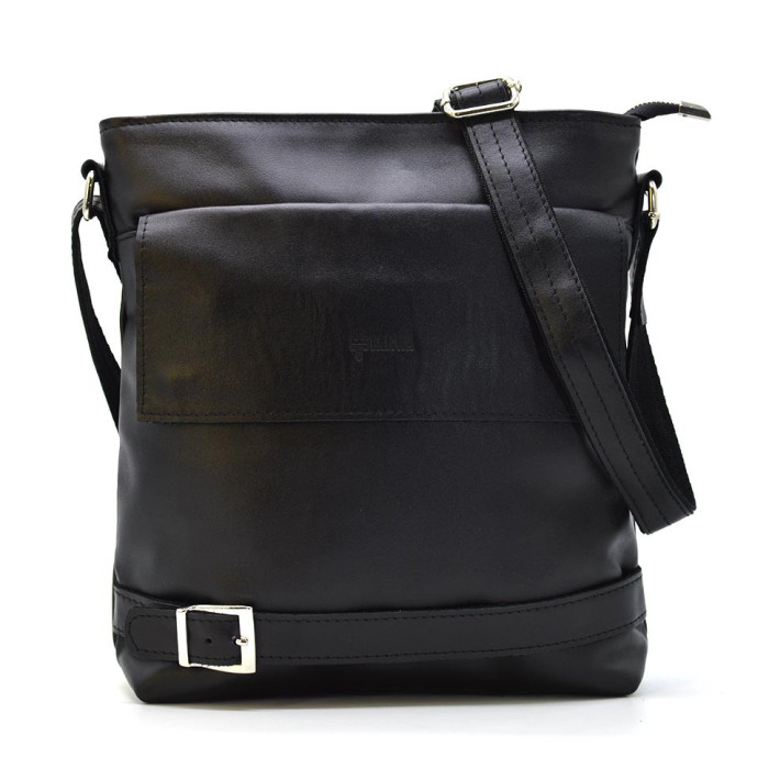 Шкіряна сумка чоловіча через плече чорна TARWA GA-0040-3md з передньою кишенею з клапаном. Якісна теляча шкіра Наппа. Одне основне відділення на блискавці. Шкіряний ремінь на плечі з регулюванням довжини.