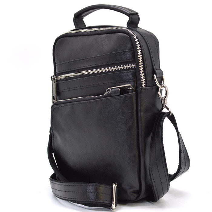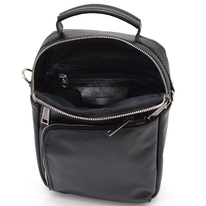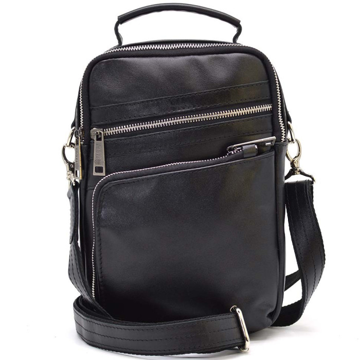 Сумка через плече у шкіряній ручці TARWA GA-0120-4lx. Шкіра – теляча, наппа, колір – чорний. Розмір 28*20*8см.