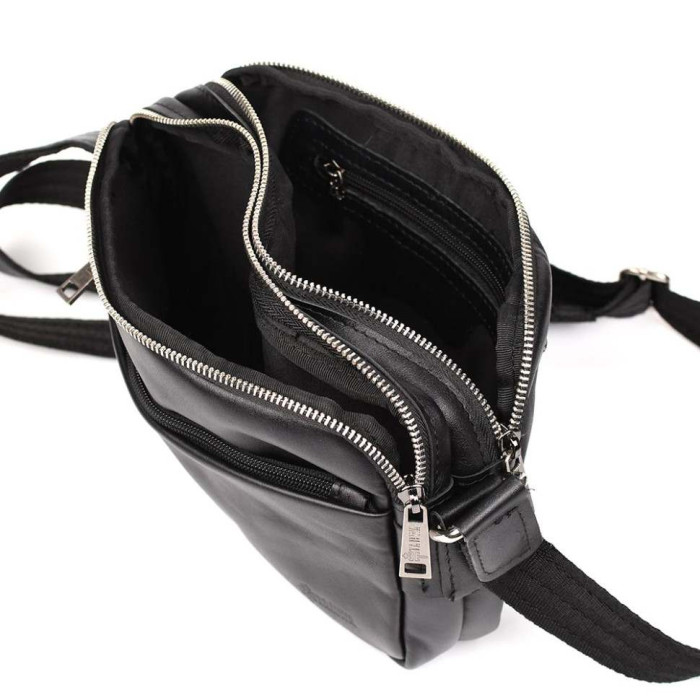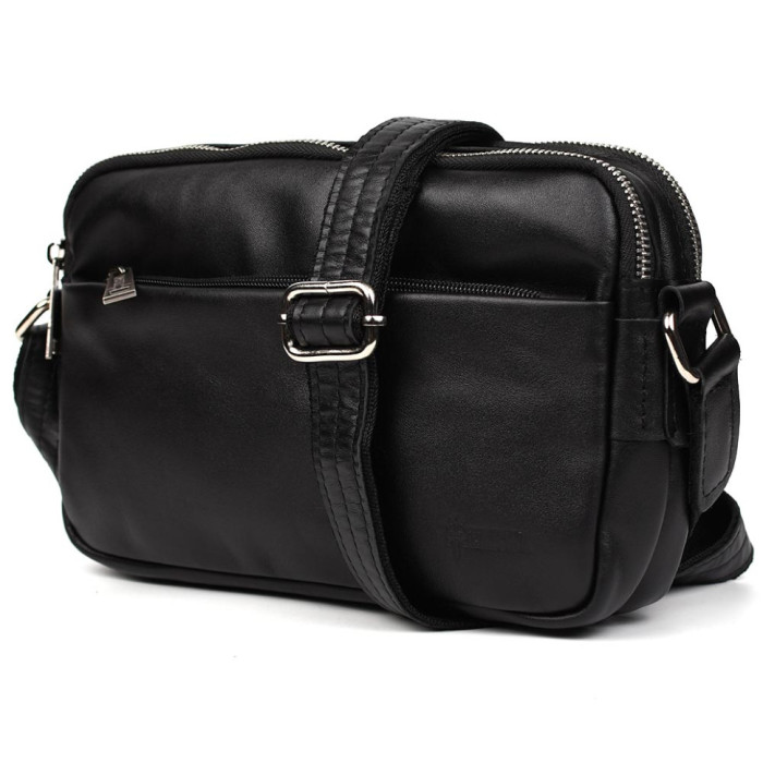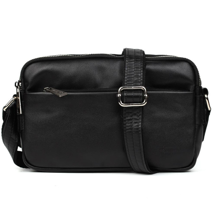 Стильний аксесуар на кожен день, у поїздці та на прогулянці. Сумка складається з двох окремих великих відділень, що застібаються на блискавці. Зовнішній бік доповнює кишеню практично на всю лицьову поверхню, що також застібається на блискавку. На задній стороні є врізна кишеня. Ремінь виконаний повністю із шкіри з текстильною основою з регулюванням по довжині.