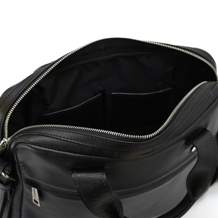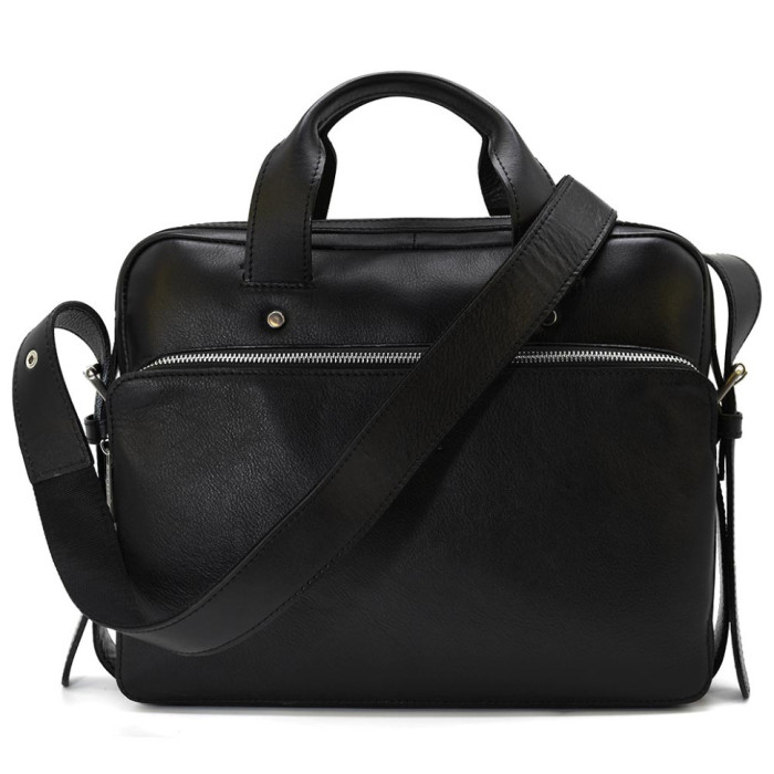 Класична чоловіча сумка для ноутбука, макбука або документів з натуральної шкіри з ручками та передньою об'ємною кишенею для заряджання, блоку живлення, мишки та інших речей. Закривається сумка для ноутбука на блискавку. У комплекті шкіряний ремінь на плечі з оригінальною системою кріплення і бічними регулюваннями. Всередині тканинна підкладка, кишеня на блискавці, відкрита кишеня.