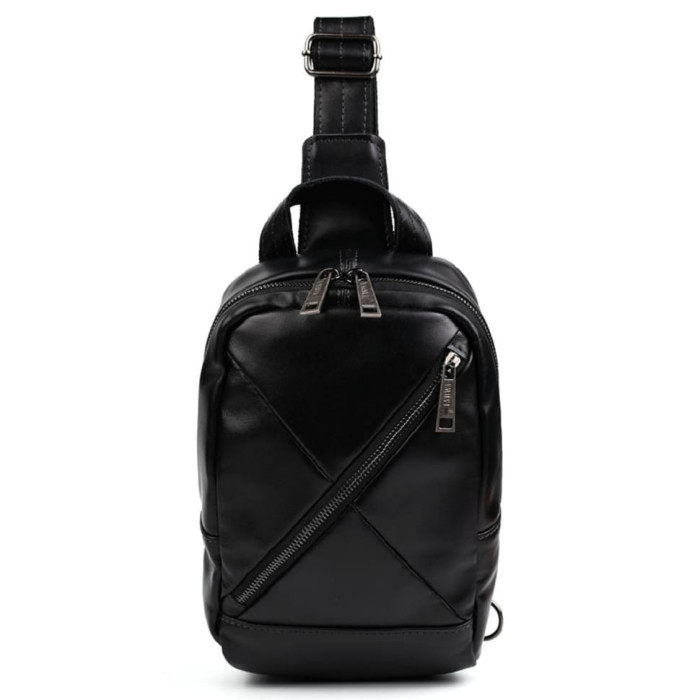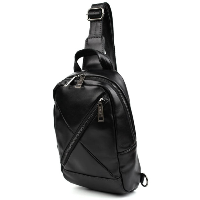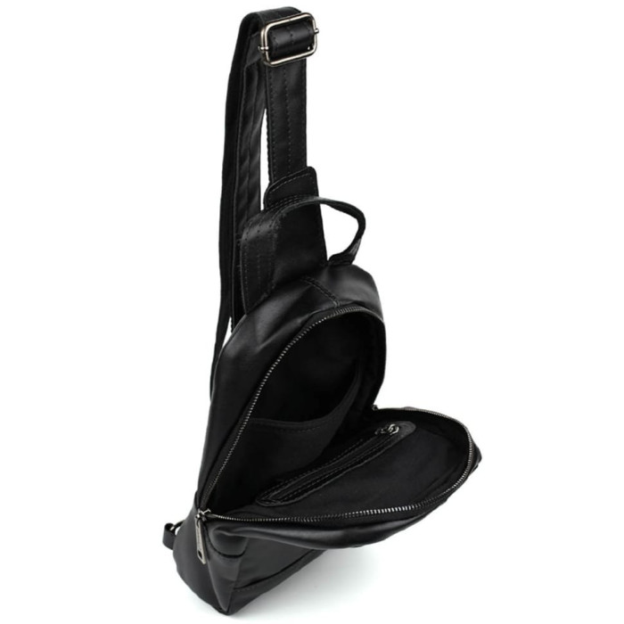 Чоловічий слінг шкіряний рюкзак ТАРВА 6010 виготовлений з телячої шкіри чорного кольору.