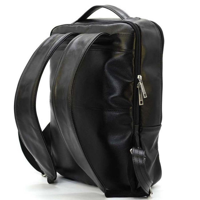 Від українського бренду TARWA. Практична модель для щоденного носіння. Рюкзак складається із двох відділень, які застібаються, кожне на окрему блискавку. У більшому за розміром відділенні можна переносити ноутбук, для цього є спеціальний м'який відсік, а також документи, книги, смартфон, портмоне, ключі та багато іншого, завдяки безлічі кишень. Зовні на лицьовій стороні є додаткове відділення-кишеня накладного типу, яка застібається на магнітну кнопку. Рельєфна шкіра, яка не боїться подряпин, щільна підкладка та надійна фурнітура порадує свого власника довгою службою. Широкі шкіряні шлейки забезпечать комфортне носіння аксесуара на спині. Виріб оснащений ще маленькою ручкою, що розташована зверху, для перенесення в руці.