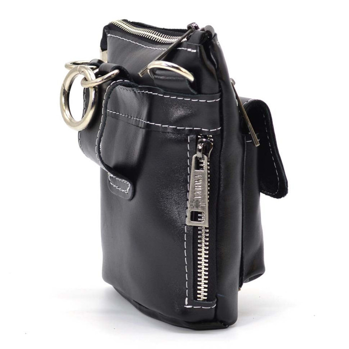 Характеристики сумки на пояс або через плече TARWA GAw-1350-3mdНа задній стороні сумки знаходяться всі органи керування сумкою: петля для ременя, два металеві півкільця для фіксації карабіном знімного ременя, велике кільце-карабін для фіксації на петлі джинсів або рюкзака.