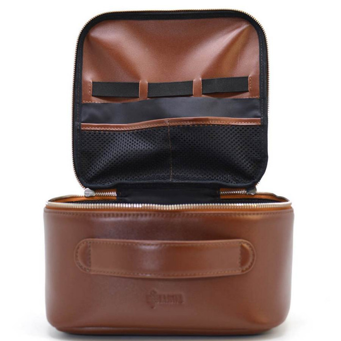 Бьюти кейс, косметичка, органайзер для косметики TARWA GB-1001-4lx насыщенного терракотового цвета с фурнитурой и молниями соответствующего цвета.