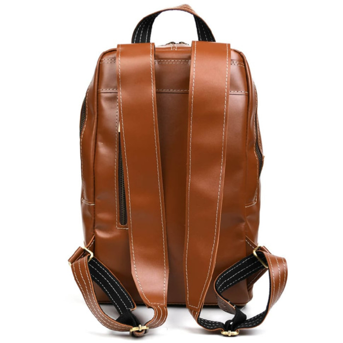 Шкіряний жіночий рюкзак TARWA GB-2008-3md гладка шкіра коньячна Жіночий рюкзак з натуральної шкіри телячої коньячного кольору, TARWA GB-2008-3md середнього розміру, від українського виробника. Виріб складається з двох відділень, застібаються кожне на окрему блискавку. Всередині є кілька відкритих кишень для дрібних предметів. Шлейки повністю шкіряні з регулюванням довжини. Зверху присутнє маленька ручка для перенесення аксесуара в руці. Усередині подклад з щільного текстилю. Гарний аксесуар для дівчат і жінок, призначений для щоденного використання.
