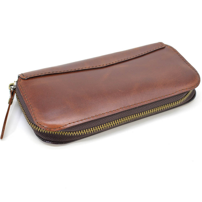 Чоловічий шкіряний гаманець довгий довгий TARWA GB-711-3md на блискавці. Усередині два відділи для купюр, середня кишеня-перегородка на блискавці для монет, слоти для карток з боків – лише 8 слотів.