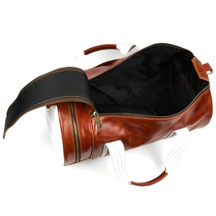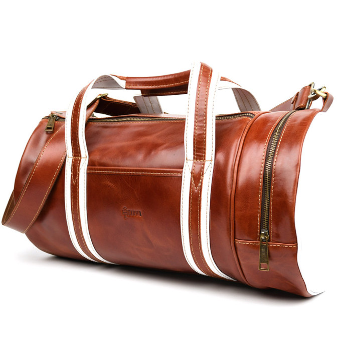Спортивна статусна шкіряна сумка люкс сегмента TARWA GSR-5565-4lx у комбінації білої шкіри та шкіри алькор у коньячному кольорі