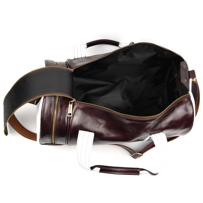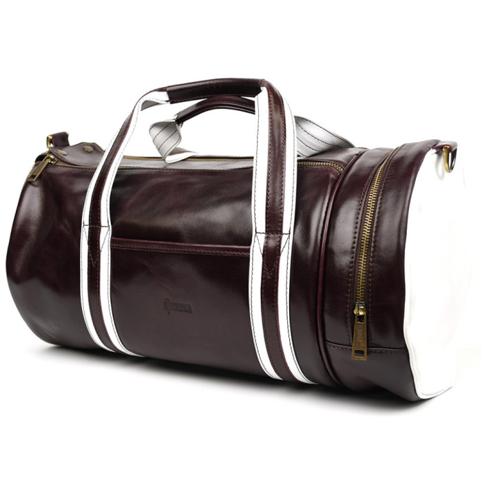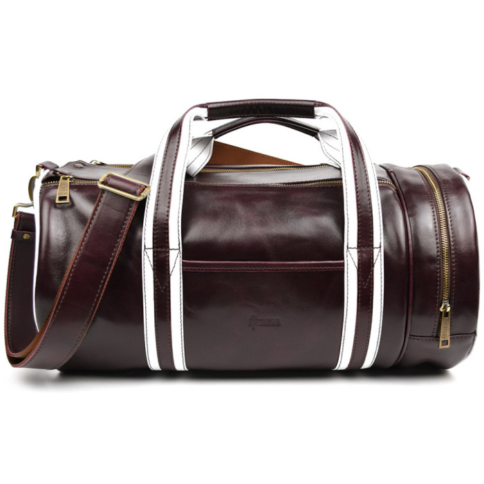 Спортивна статусна шкіряна сумка люкс сегмента TARWA GSR-5565-4lx у комбінації білої шкіри та шкіри алькор у бордовому кольорі