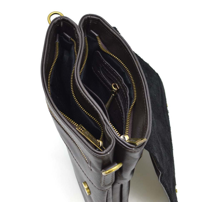 Чоловіча сумка через плече GC-0022-4lx TARWA на 2 відділення від українського бренду TARWA на два відділення з клапаном, натуральна шкіра Наппа. Модель може вміщувати документи формату А5 та планшет. Виріб виготовлений із натуральної м'якої телячої шкіри. Сумка складається із двох відділень, що застібаються за допомогою шкіряного клапана, з магнітними кнопками. Усередині є врізна і відкрита кишені в одному відділенні, і ще одна відкрита ховається під клапаном. На задній стороні є врізна кишеня на блискавці. Аксесуар зручно носити на плечі завдяки плечовому ременю з регулюванням довжини.