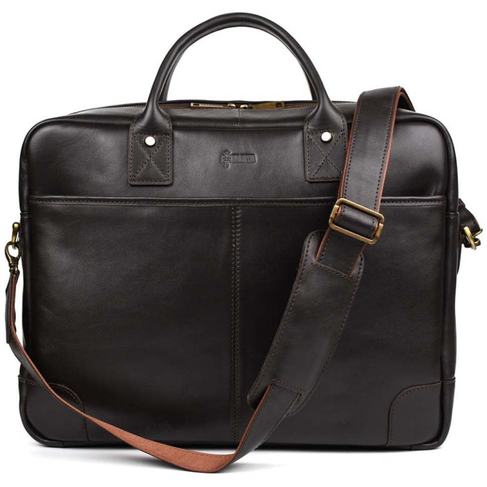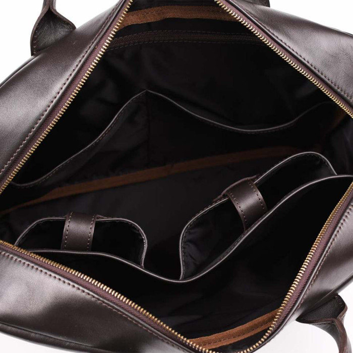 Стильна та дуже красива чоловіча сумка з двома ручками, виготовлена зі шкіри Наппа GC-0458-4lx від українського бренду TARWA. Її можна носити в руці та на ремені через плече. Виріб має одне величезне відділення, всередині якого розташовується ущільнений відсік для ноутбука, також є дві великі шкіряні кишені для телефону і портмоне і дві тканинні відкриті. Ще є кишеня всередині з блискавкою. Зовні сумка оснащена по обидва боки кишенями з блискавкою, що вміщують формат А4. Аксесуар має шкіряне ущільнене дно з металевими ніжками. сумку можна використовувати для повсякденного носіння та відряджень, т.к. вона досить містка, і Ви зможете розмістити у ній усі необхідні речі.