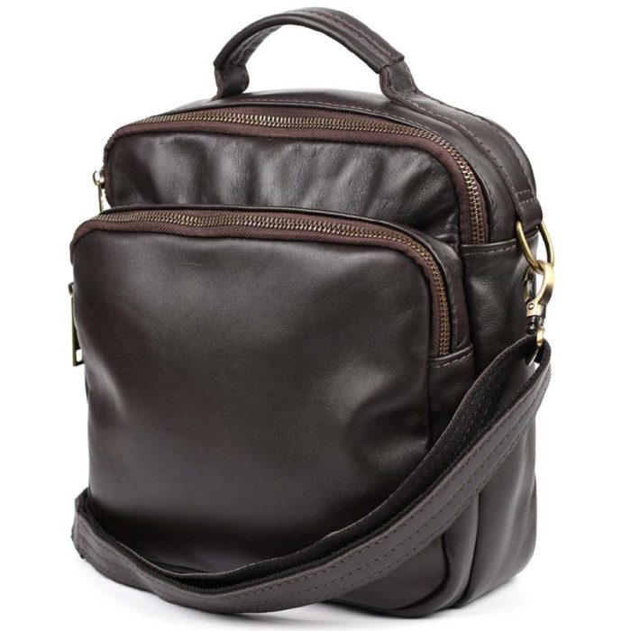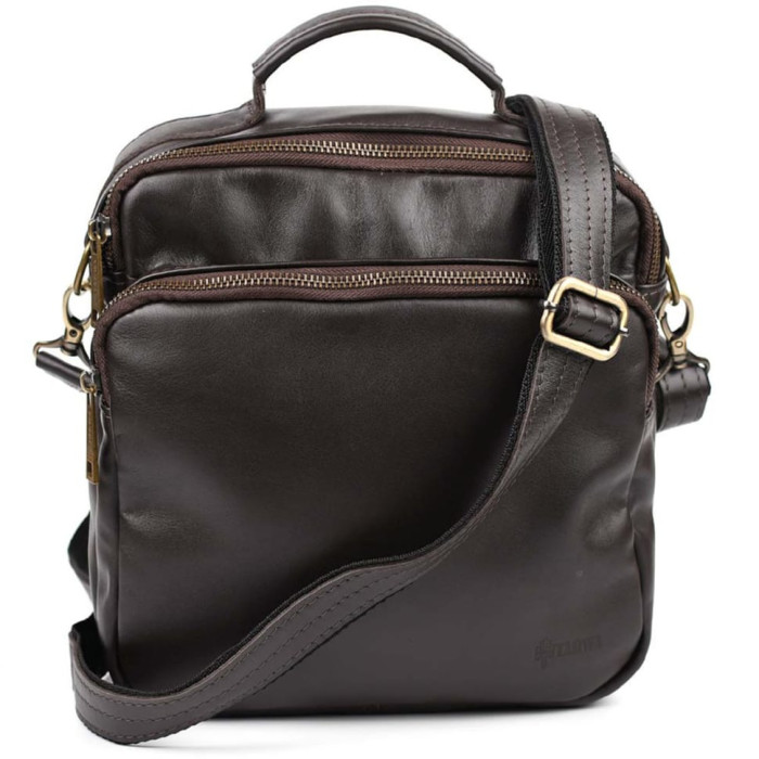Чоловіча сумка на плече з шкіряною ручкою GC-6018-3md TARWA коричнева Український бренд TARWA.
