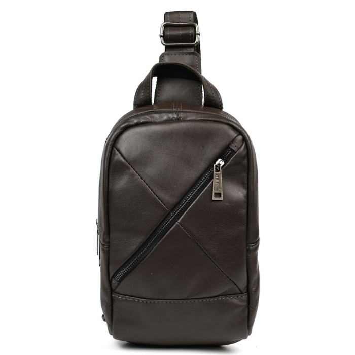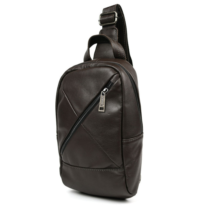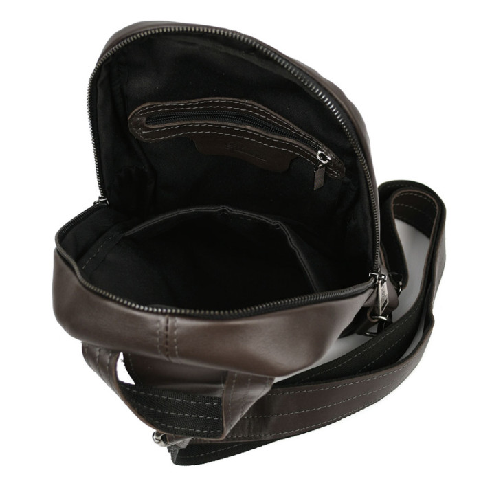 Чоловічий слінг шкіряний рюкзак ТАРВА 6010 виготовлений з телячої шкіри коричневого кольору.