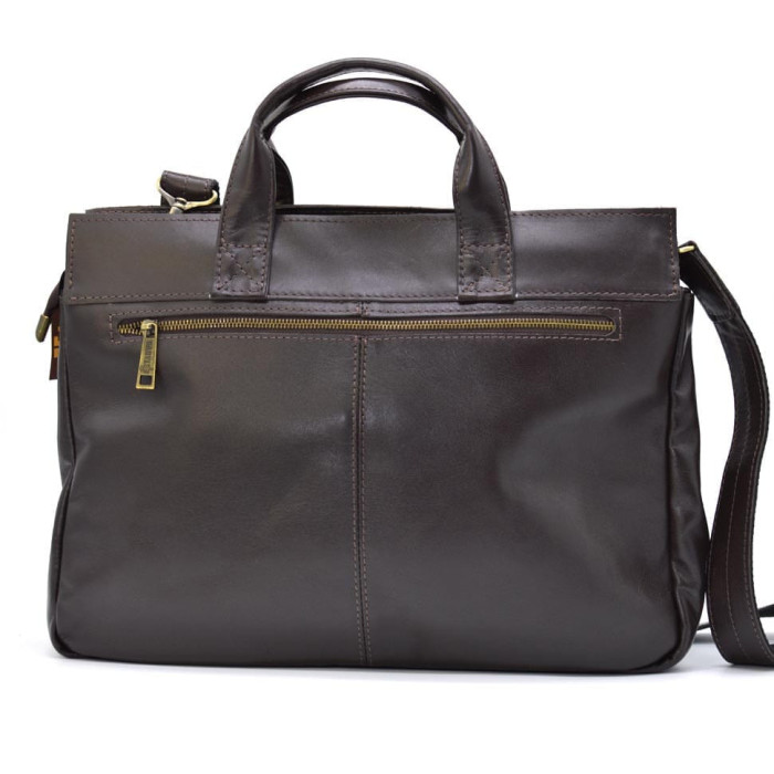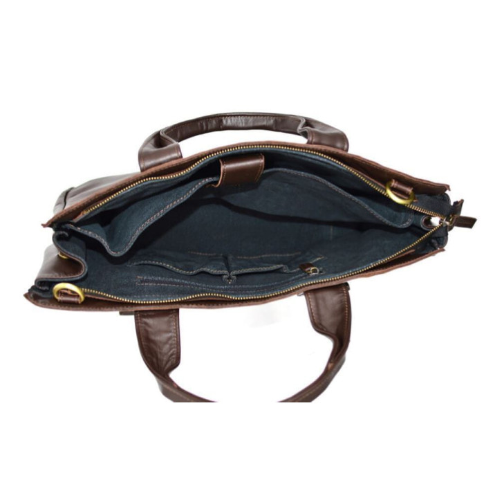 Красива ділова шкіряна сумка з відділом для ноутбука GC-7107-1md. Виріб має одне основне відділення, всередині якого, є великий шкіряний кишеню, що застібається на липучку, для ноутбука 14 "або документів. Також всередині сумочки є два накладних маленьких кишені для телефонів, і один побільше, що застібається на блискавку, наприклад для цінних дрібних речей. на задній стороні сумки є кишеня з блискавкою, а лицьову сторону прикрашають цілих два великих кишені, які прикриті наполовину шкіряним клапаном з тонкими ремінцями і магнітами. У даного аксесуара є дві маленькі шкіряні ручки і знімний ремінь через плече, шкіряний з текстильної основою, що кріпиться з допомогою металевих карабінів. Така модель виготовляється і в чорному кольорі, також є відео.