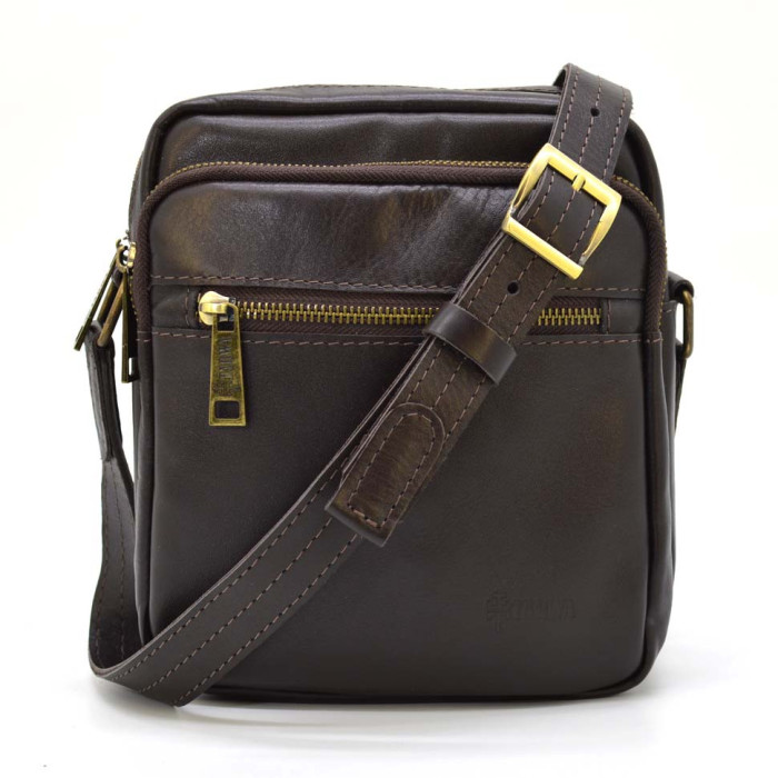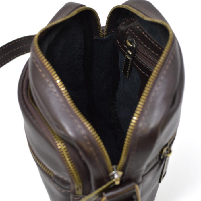 Чоловіча шкіряна сумка через коричневе плече GC-8086-1md TARWA шкіра всередині від українського бренду TARWA. Маленька, але містка сумочка, в якій Ви з легкістю зможете розмістити свої необхідні речі. Виріб на одне відділення, з внутрішньою кишенею врізною з блискавкою. На лицьовій стороні є дві кишені з блискавками, а також на тильній стороні одна кишеня. Аксесуар оснащений шкіряним регульованим двостороннім ременем.