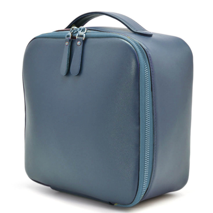 Бьюті кейс, шкіряна косметичка, органайзер для косметики TARWA GK-1001-4lx насиченого бірюзового кольору з фурнітурою та блискавками срібло.