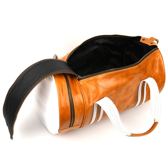Спортивна статусна шкіряна сумка люкс сегмента GYalc-5565-4lx у комбінації білої шкіри та шкіри алькор у помаранчевому кольорі.